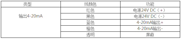 34-20mA四线制接线方法:红:24V+ 黑与橙:公共负蓝:4-20mA+